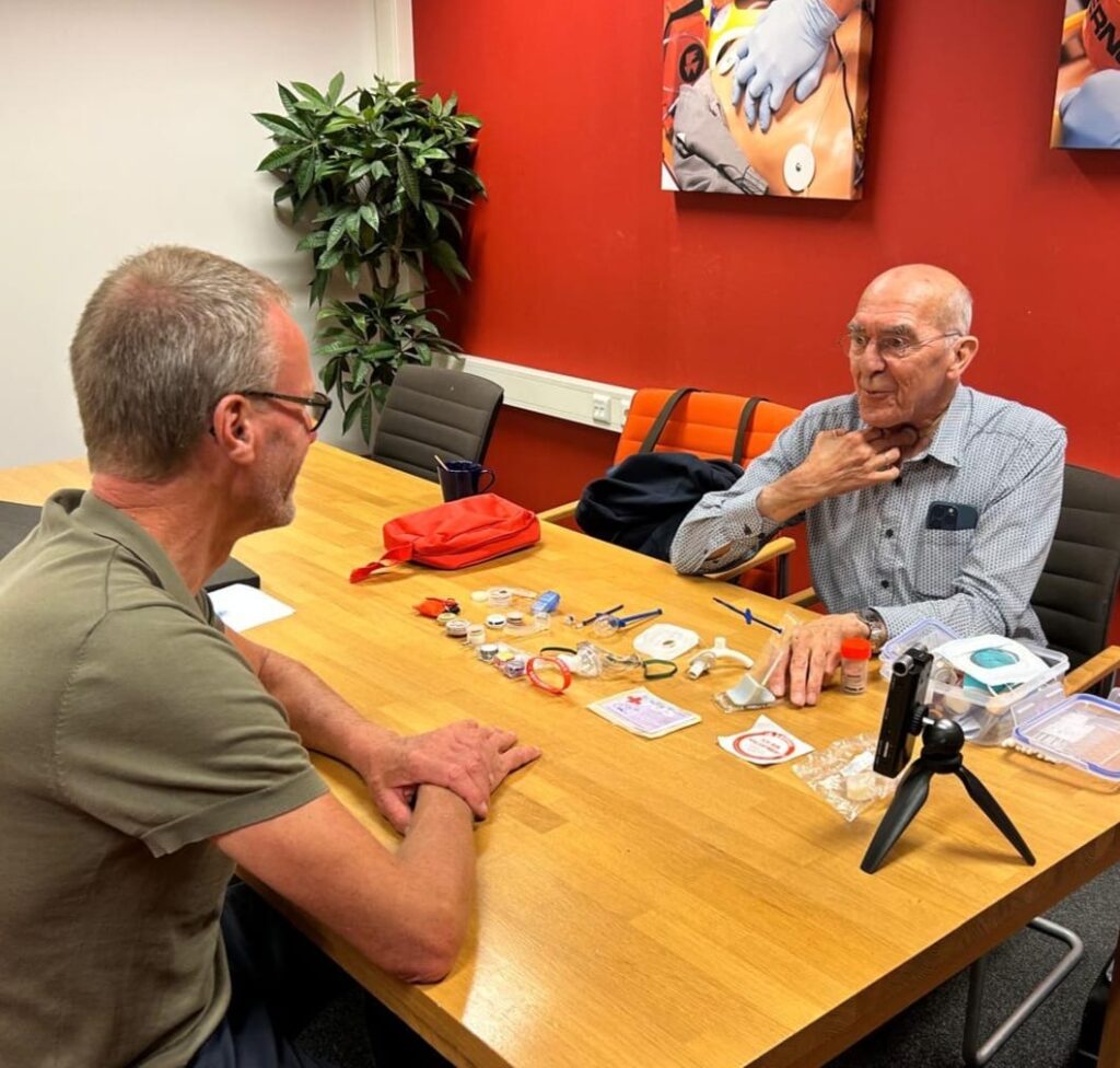 Hans Witvliet is voorlichter van de Patiëntenvereniging Hoofd-Hals. Zijn drive: meer bewustwording en praktische verbeteringen realiseren voor mensen met een tracheostoma, zoals betere reanimatie-instructies. Via een stemprothese spreekt hij openhartig met METS Center-docent en ambulanceverpleegkundige Ruben Verlangen over zijn ervaring, de impact van de ziekte en vooral over de noodzaak van meer bewustwording en een aangepaste reanimatie-instructie.