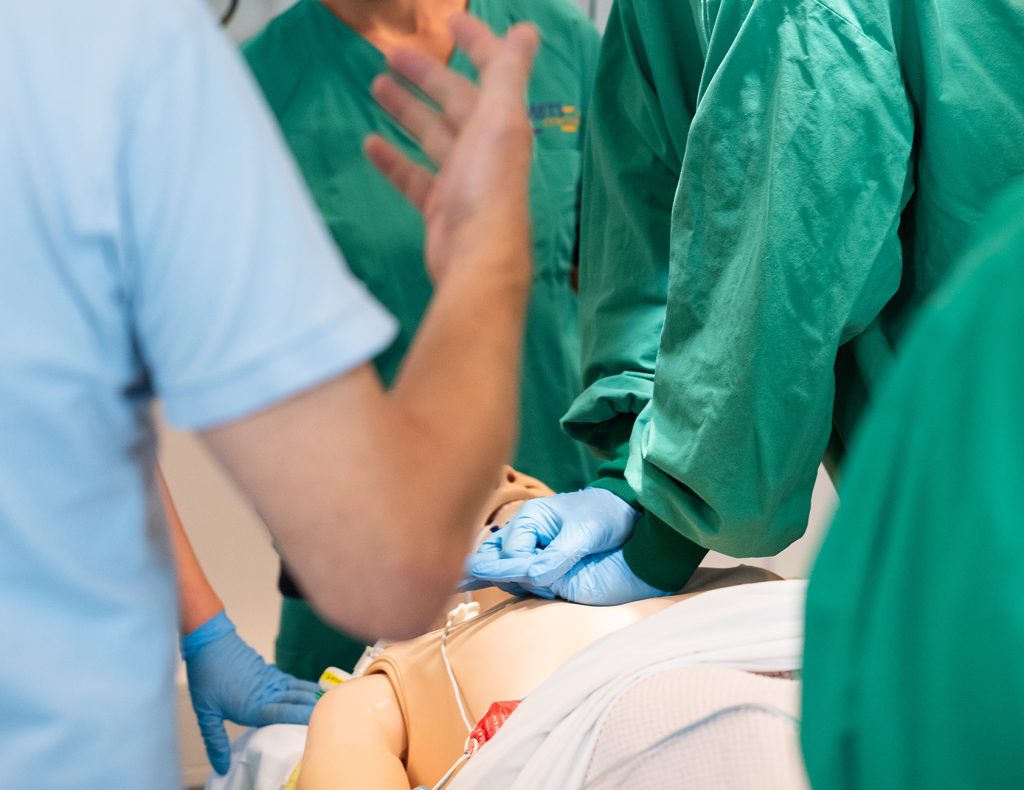 Herhalen van specialistische reanimatie van volwassenen in teamverband aan de hand van een lezing, workshops, skill station en scenario-onderwijs.